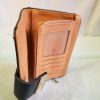 Női barna csatos pénztárca, barackvirág színű belső